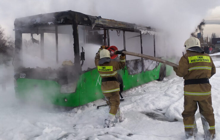 В ДЧС Алматы сообщили, что в 8:27 пожарные выехали на вызов на угол улиц Толе би и ВОАД, где они обнаружили горящий автобус ЛиАЗ с площадью горения в 25 квадратных метров. В момент возгорания в салоне не было пассажиров.