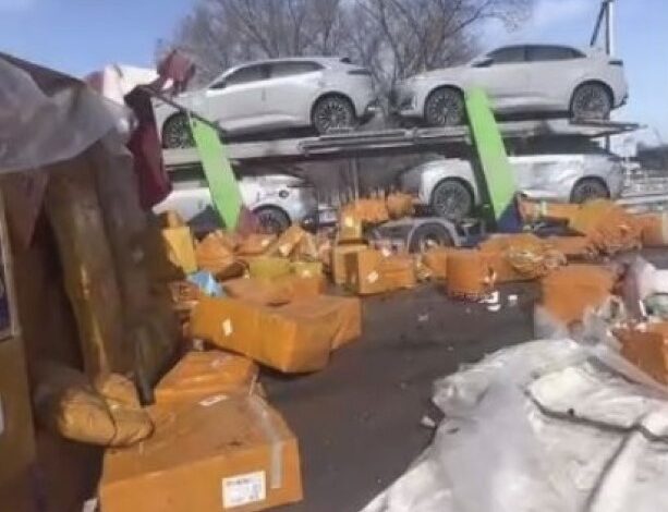 В соцсетях появилось видео ДТП, произошедшего на трассе Алматы — Хоргос. На кадрах видно перевернутый прицеп с грузами и пострадавшие автовозы.