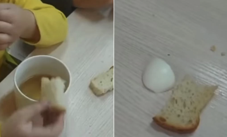 «Хлеб и яйцо. Вот. Это госсадик», – комментирует автор видео.