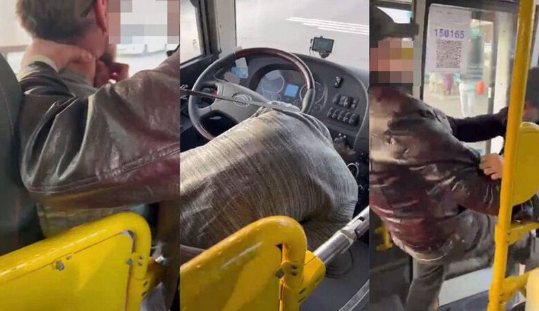 Судя по кадрам, мужчина пропустил свою остановку, после чего напал на водителя.