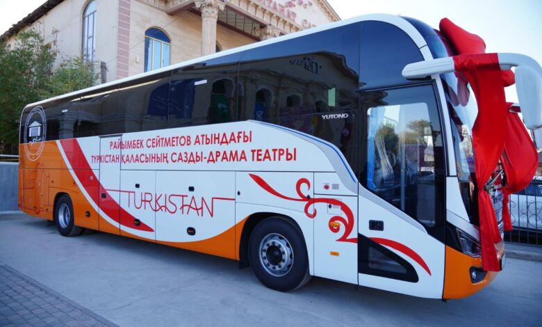 ТҮРКІСТАНДА РАЙЫМБЕК СЕЙТМЕТОВ ТЕАТРЫНА ЖАҢА АВТОБУС ТАБЫСТАЛДЫ