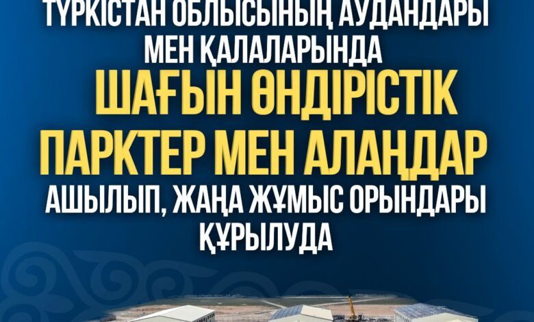 Түркістан облысының аудандары мен қалаларында шағын өндірістік парктер мен алаңдар ашылып, жаңа жұмыс орындары құрылуда