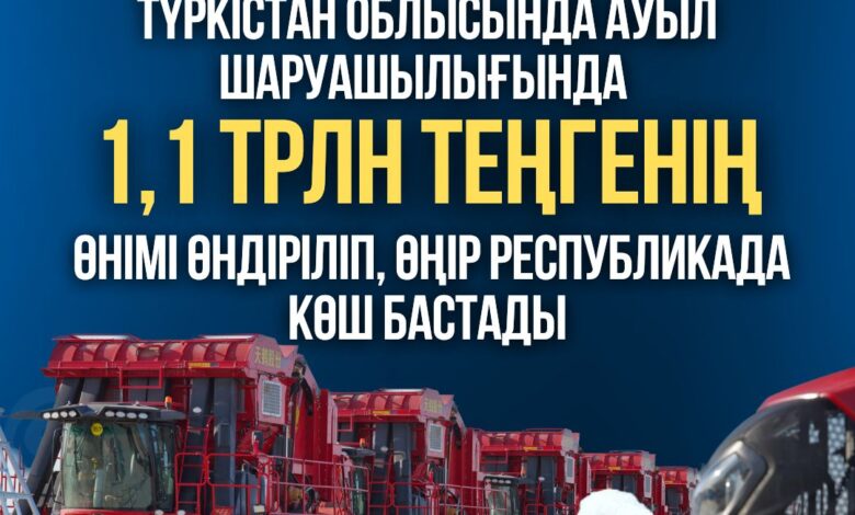 Түркістан облысында ауыл шаруашылығында 1,1 трлн теңгенің өнімі өндіріліп, өңір республикада көш бастады