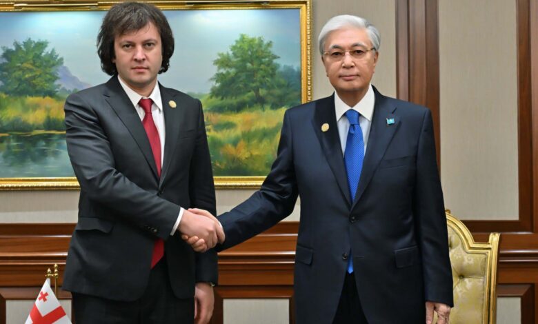 🇰🇿🇬🇪Ашхабадтағы халықаралық форум аясында Қасым-Жомарт Тоқаев Грузия Премьер-министрі Ираклий Кобахидземен кездесті