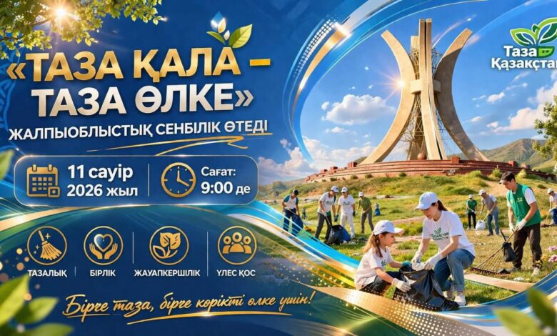 2026 жылғы 11 сәуір күні сағат 9:00-ден бастап Ұлытау облысының барлық аумағында жалпыоблыстық сенбілік өтеді.